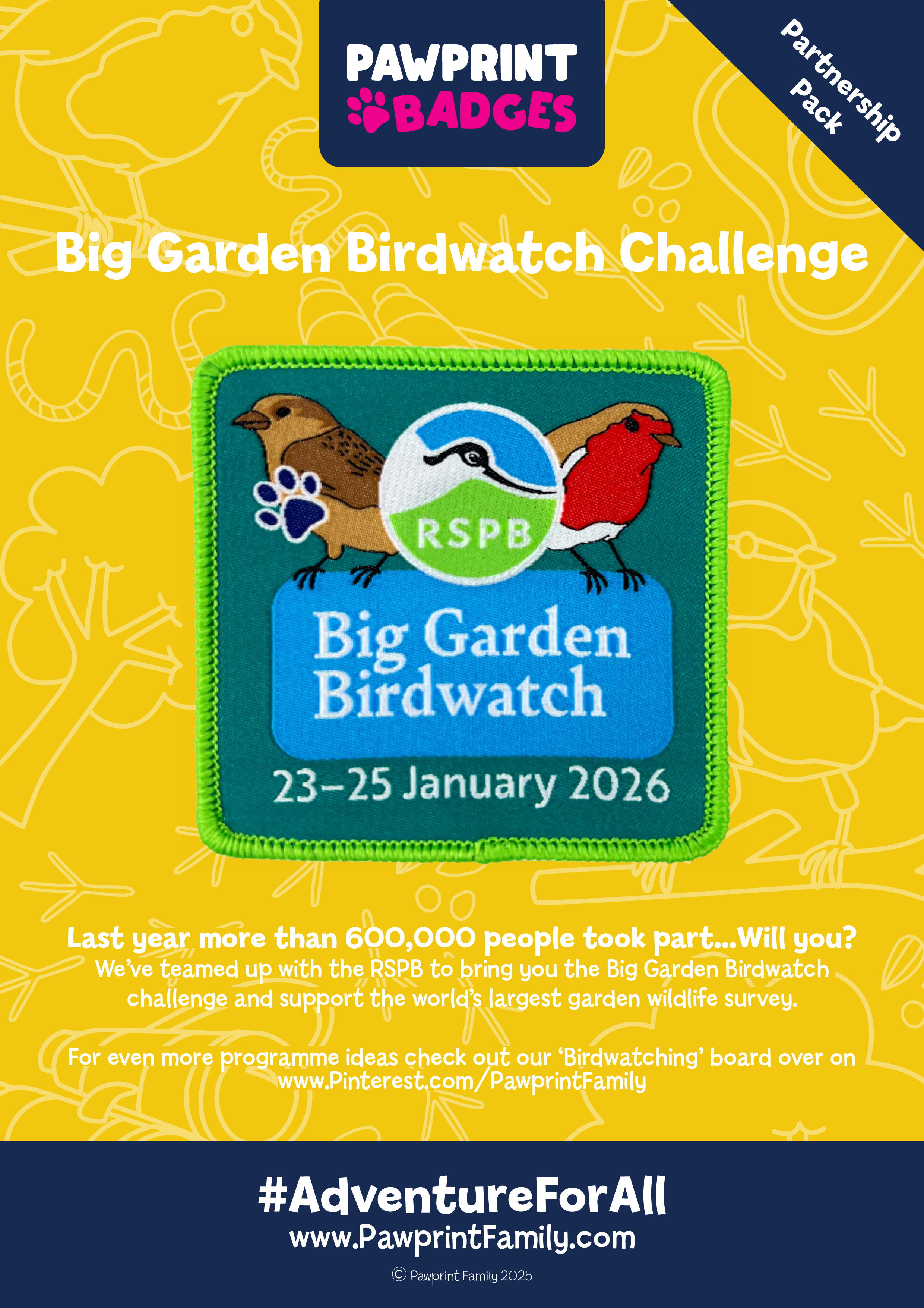 Created in partnership with the RSPB, this pack supports the world’s largest garden wildlife survey, helping young adventurers learn about birds, habitats, and how small actions can make a big difference. With 40+ activities across Craft, Food, Games, and Other, it’s perfect for groups, schools, or families taking part in the Big Garden Birdwatch.