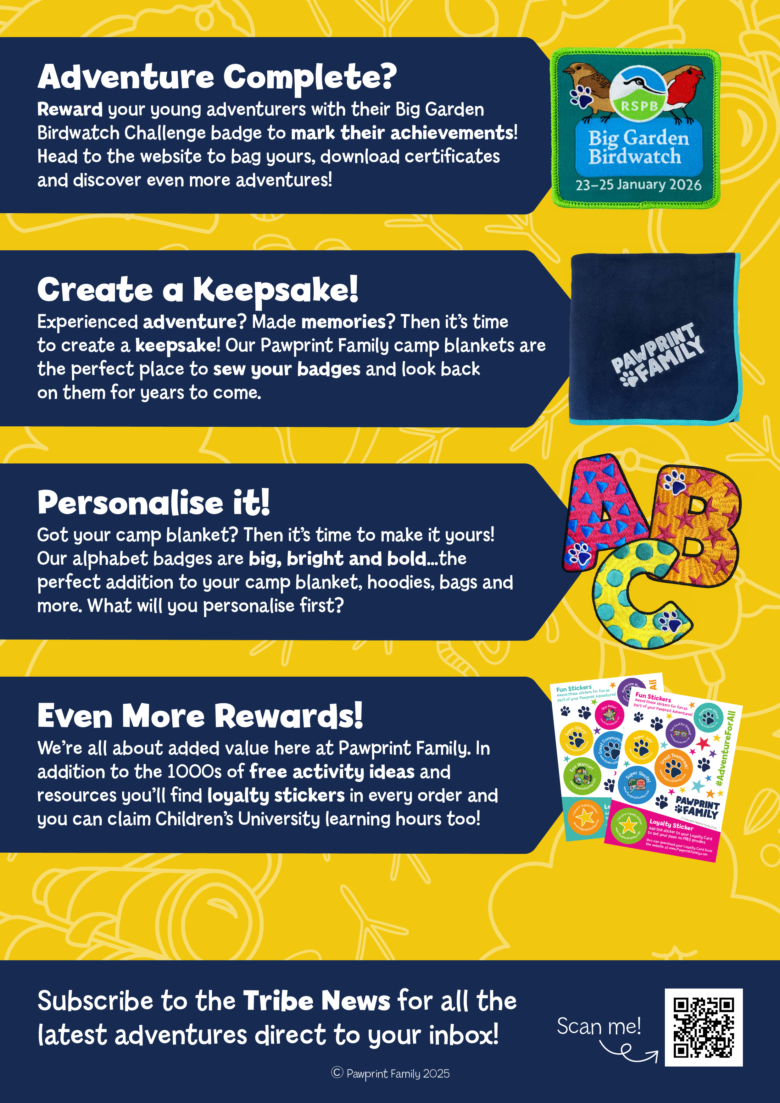 Download, print, and go! The Big Garden Birdwatch Challenge Pack is part of the Pawprint Family’s free resource library – making learning irresistible with themed adventures that spark joy, skills, and lasting memories.