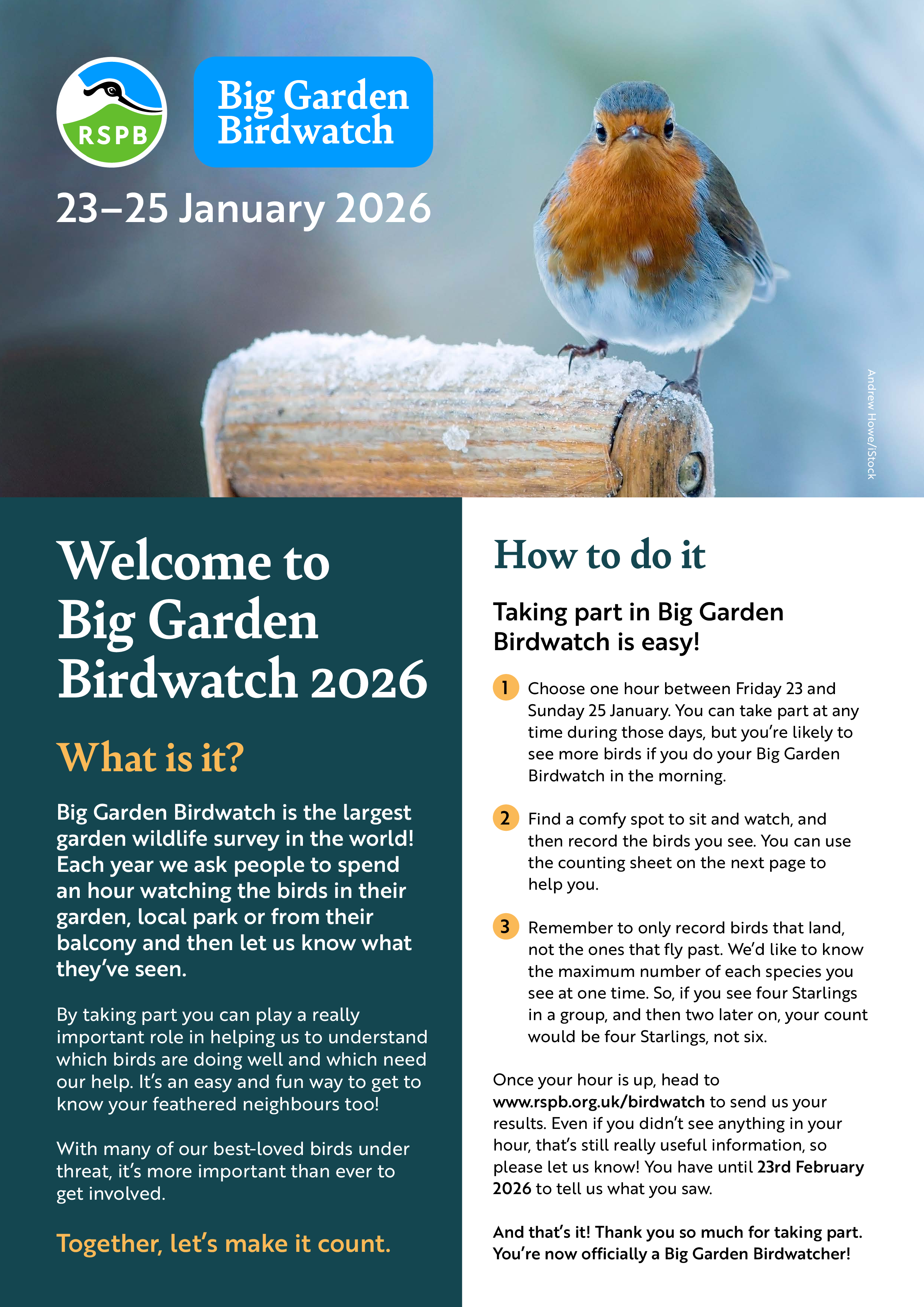 Last year more than 600,000 people took part...Will you? We’ve teamed up with the RSPB to bring you the Big Garden Birdwatch challenge and support the world’s largest garden wildlife survey.