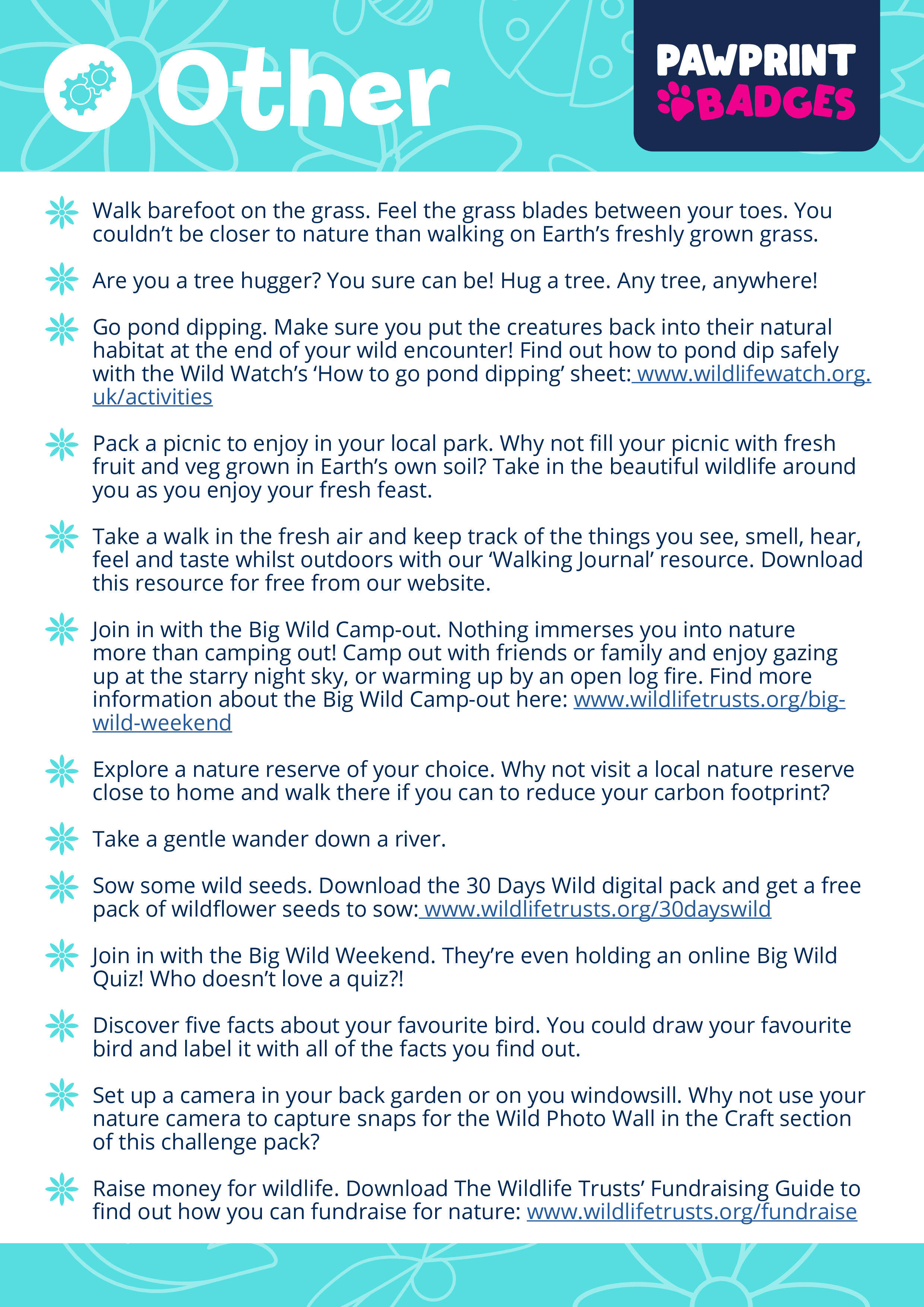 The Wildlife Trusts 30 Days Wild - 2026 Challenge Pack