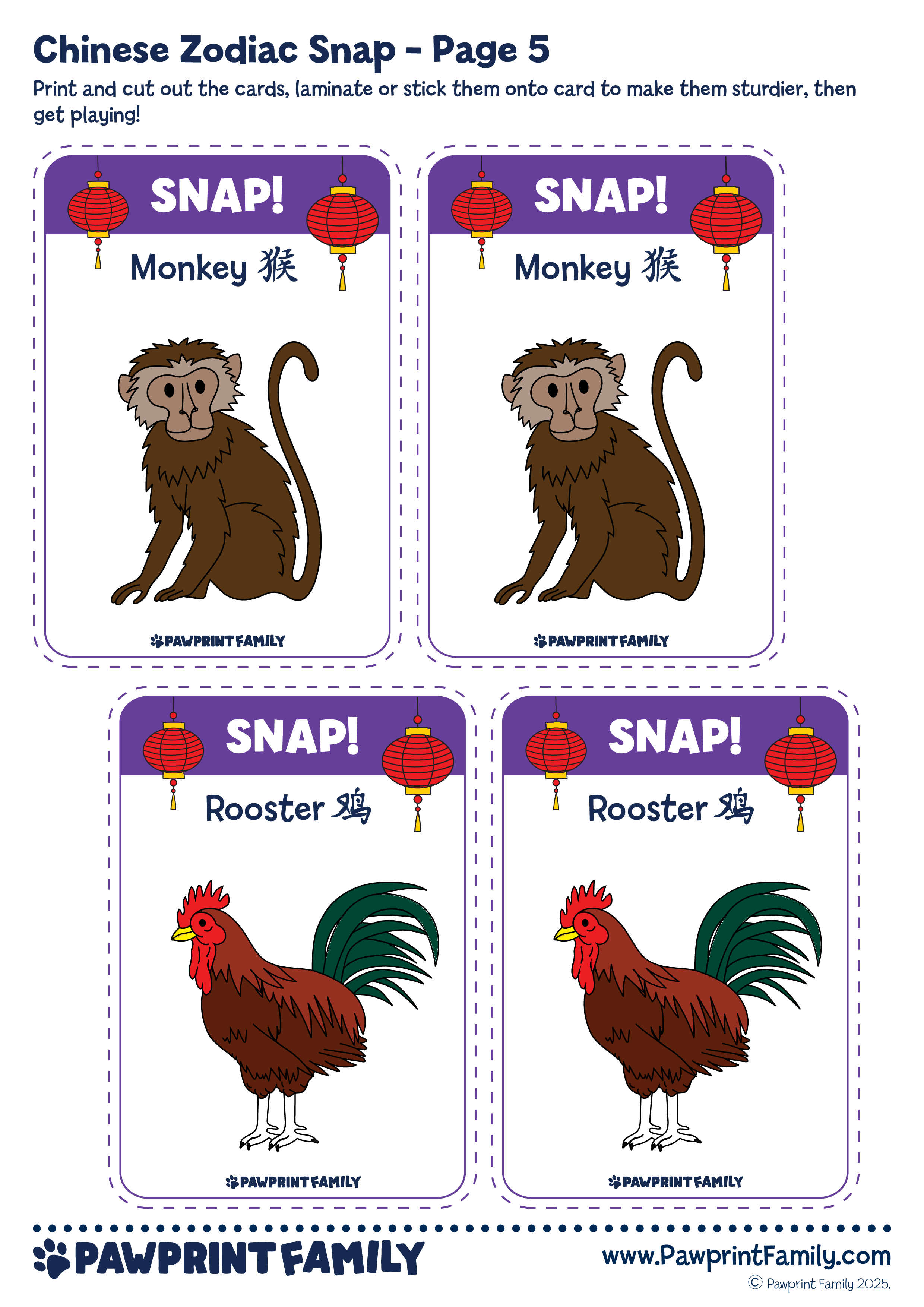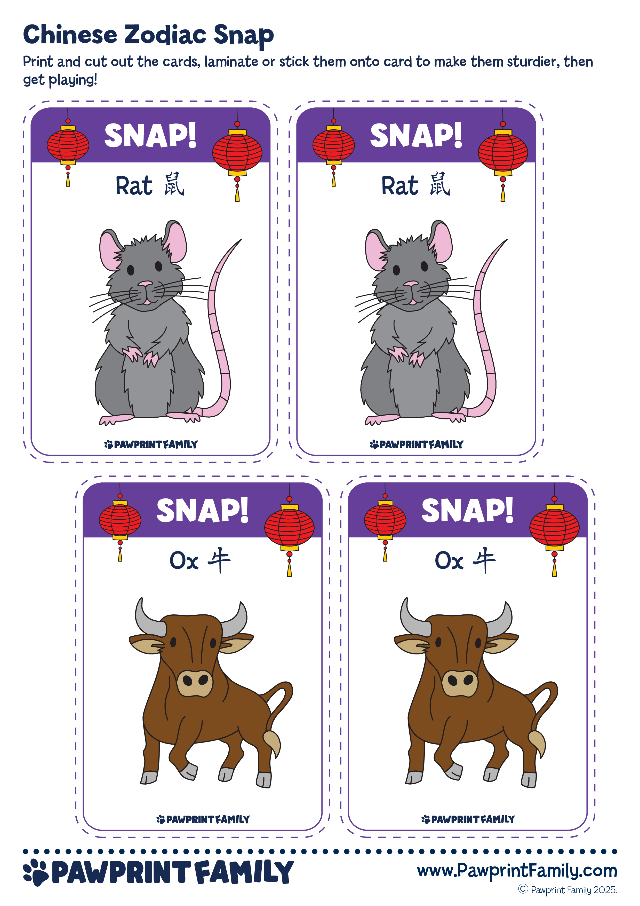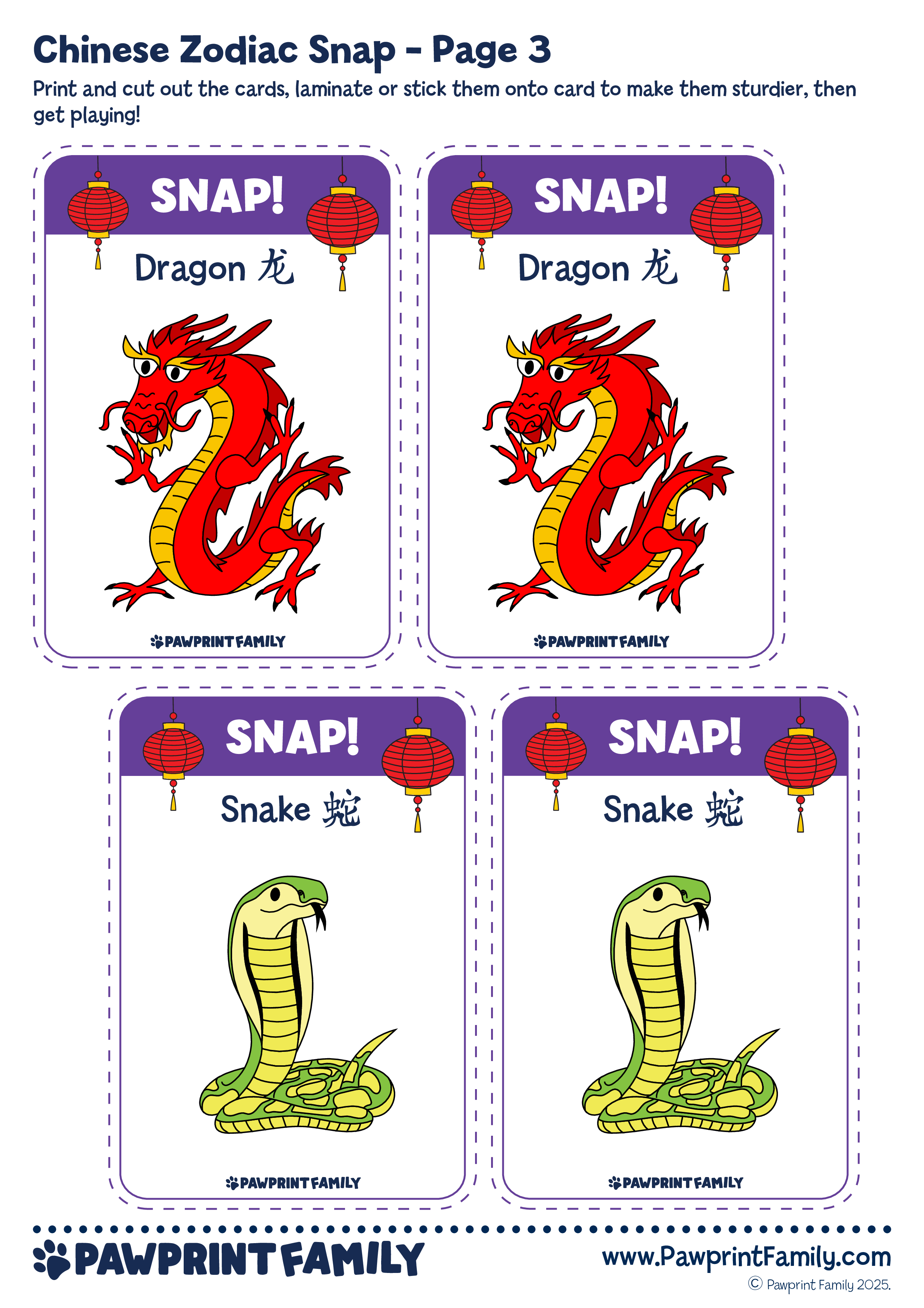 Download, print, and play! Chinese Zodiac Snap is part of the Pawprint Family’s free resource collection – making learning irresistible, one adventure at a time.