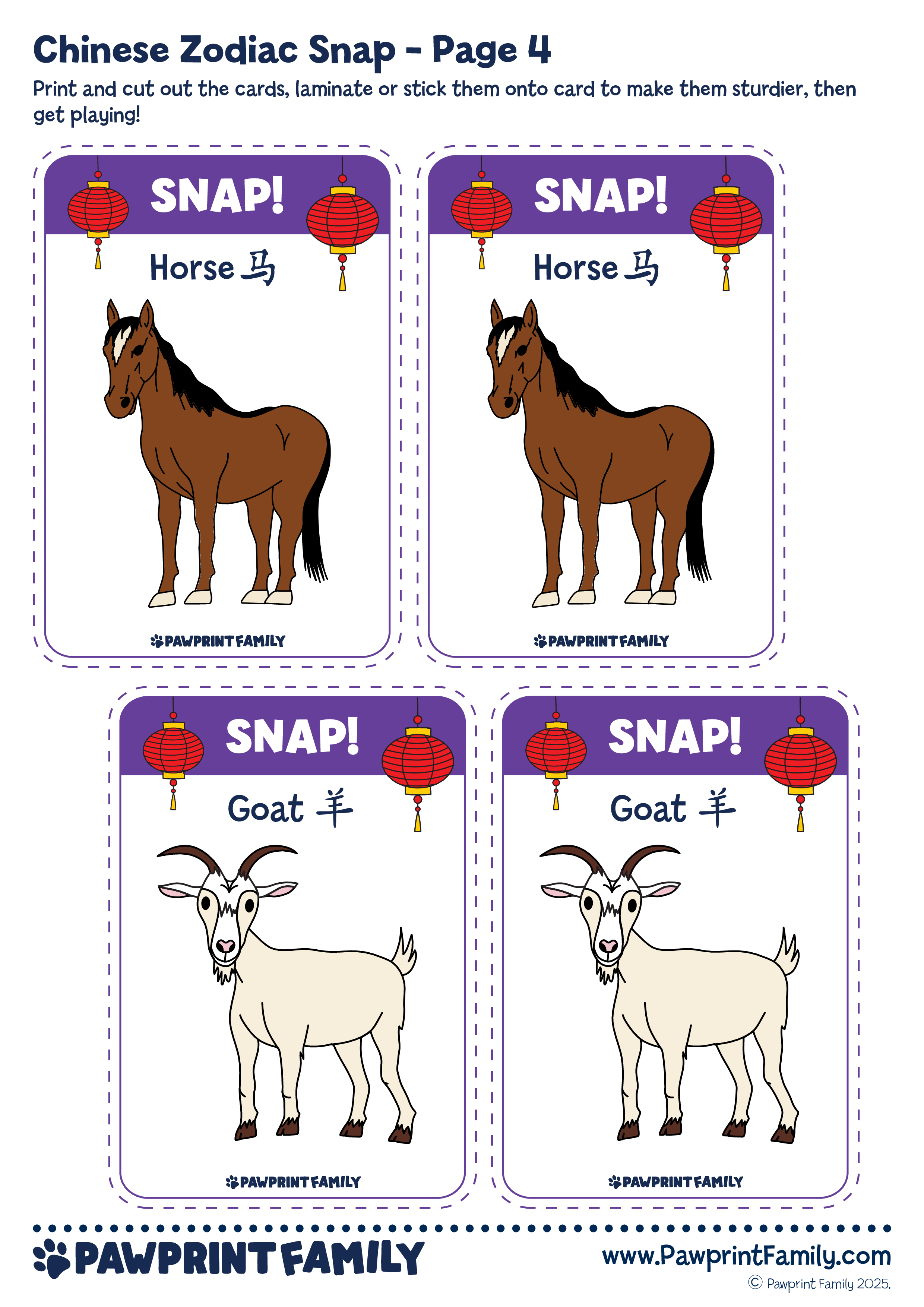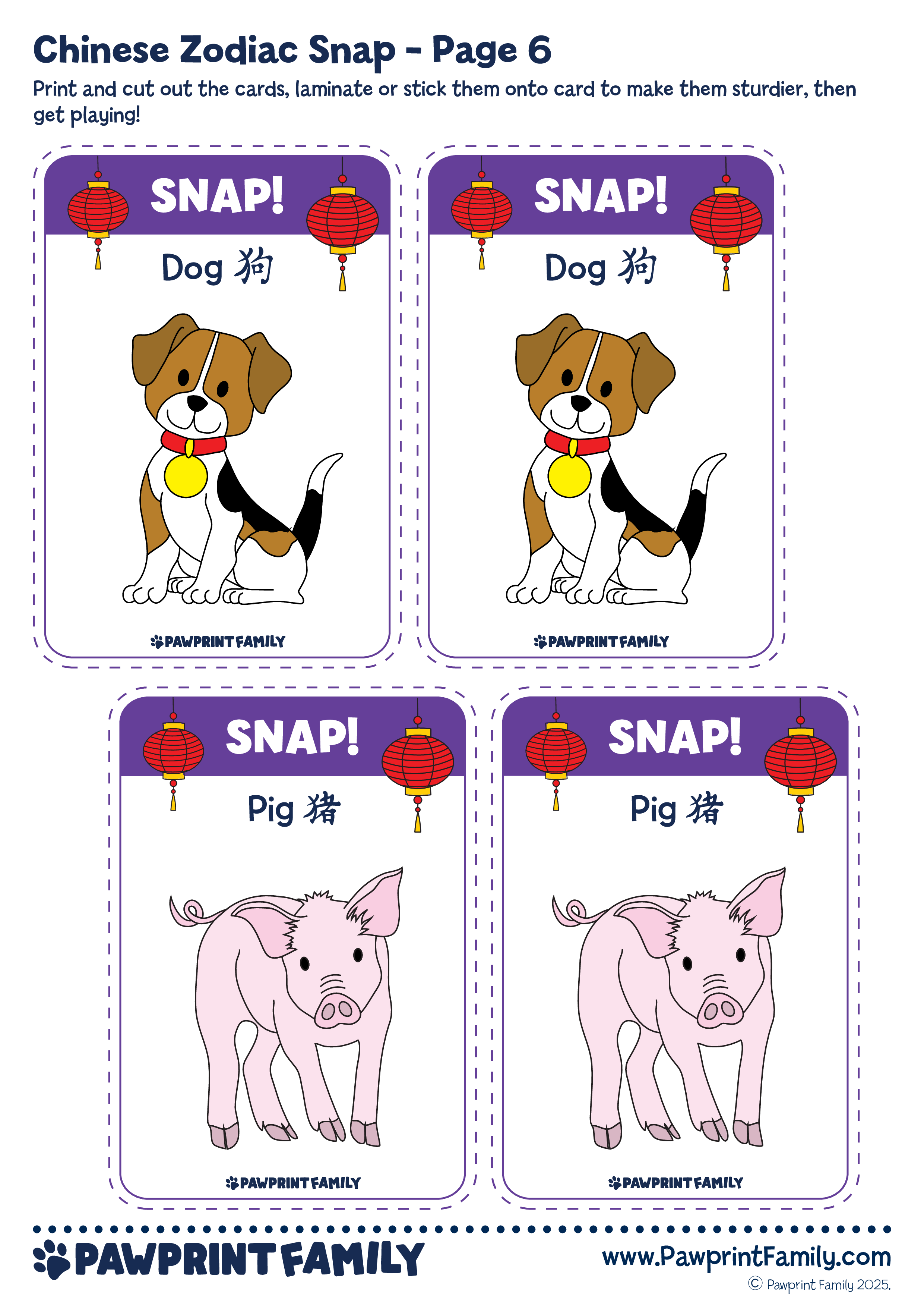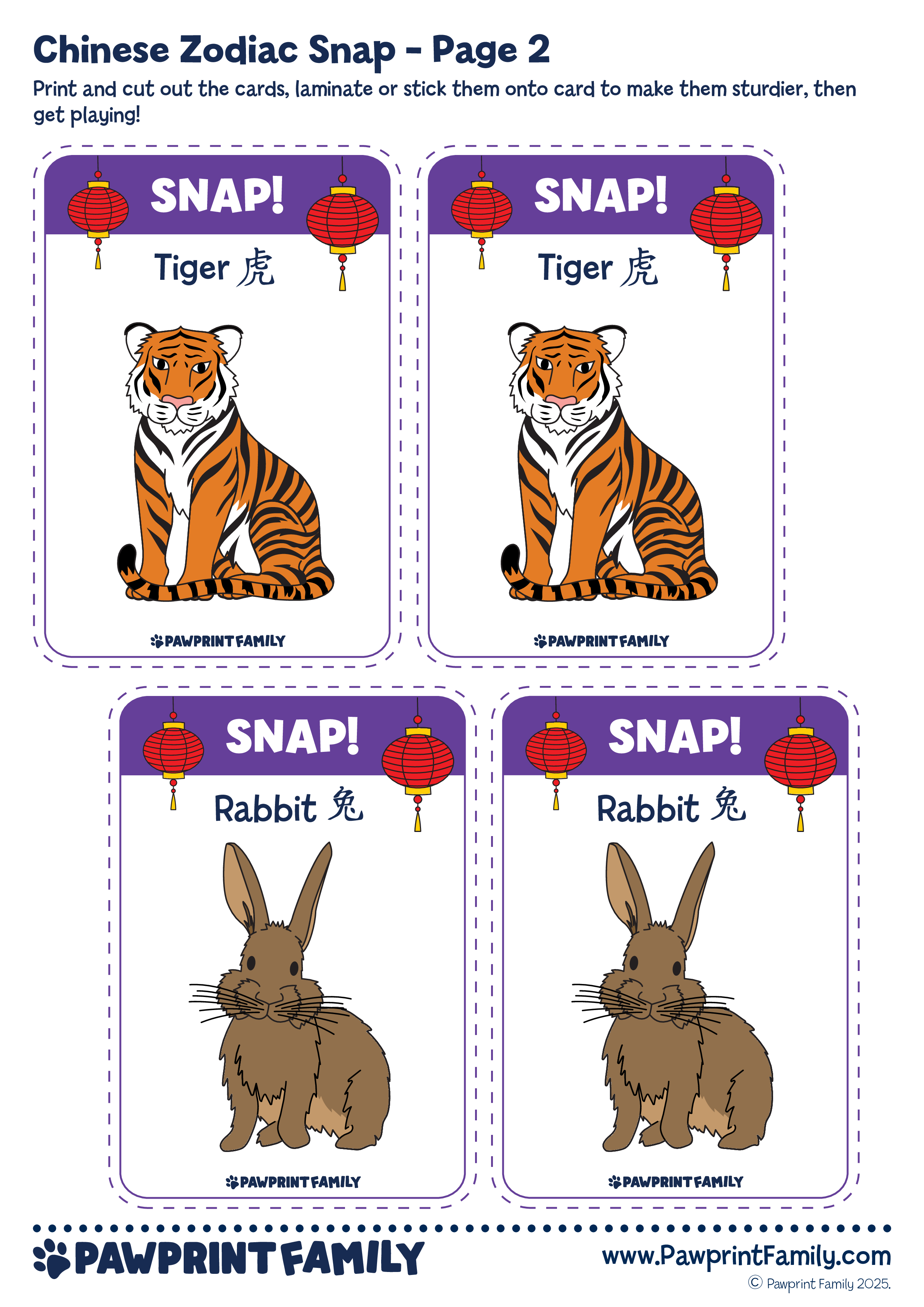 Download, print, and play! Chinese Zodiac Snap is part of the Pawprint Family’s free resource collection – making learning irresistible, one adventure at a time.