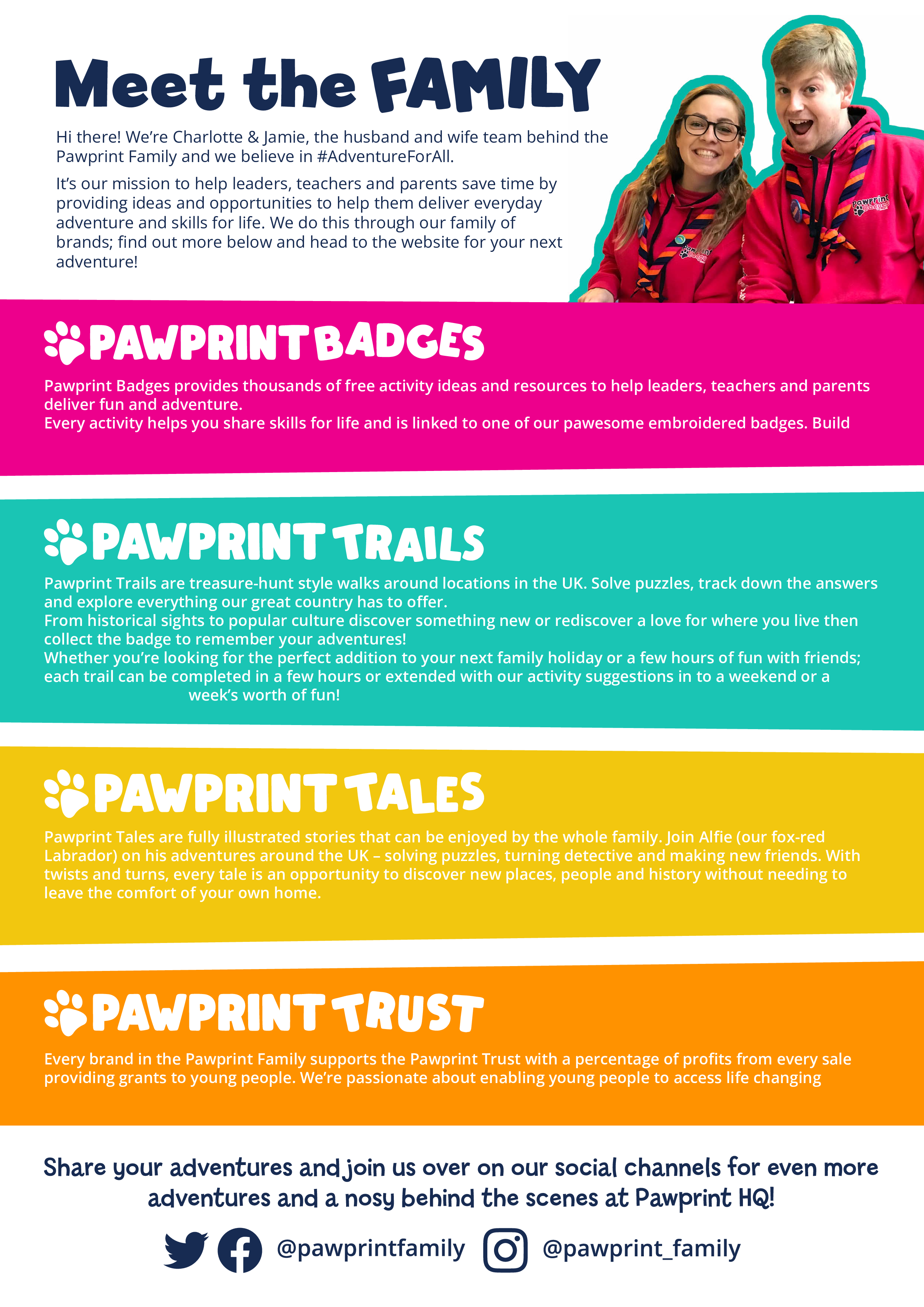 1% of every sale is donated to the Pawprint Trust, who's aim and goal is to help young people have amazing experiences. Thank you for your support.