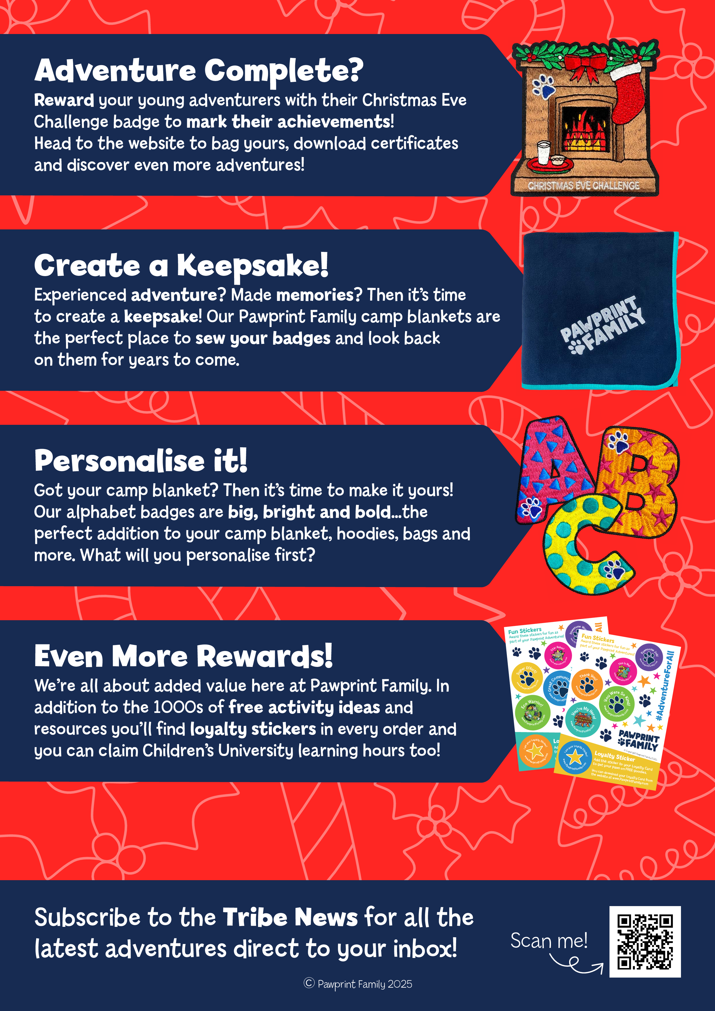 Download, print, and go! The Christmas Eve Challenge Pack is part of the Pawprint Family’s free resource library – making learning irresistible with themed adventures that spark joy, skills, and lasting memories.