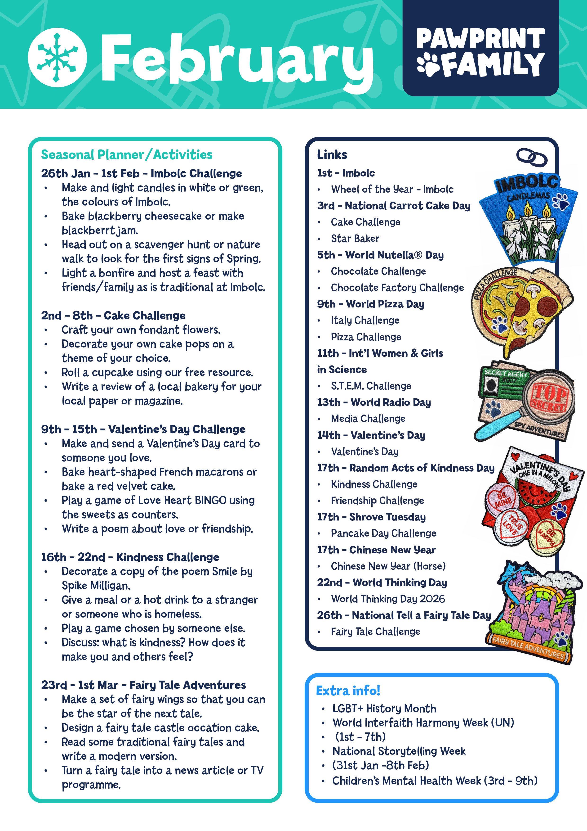 Download, print, and plan! The Spring Term 2026 Calendar is part of the Pawprint Family’s free resource collection – helping you deliver #AdventureForAll with simple tools that bring structure, inspiration, and joy to every term.
