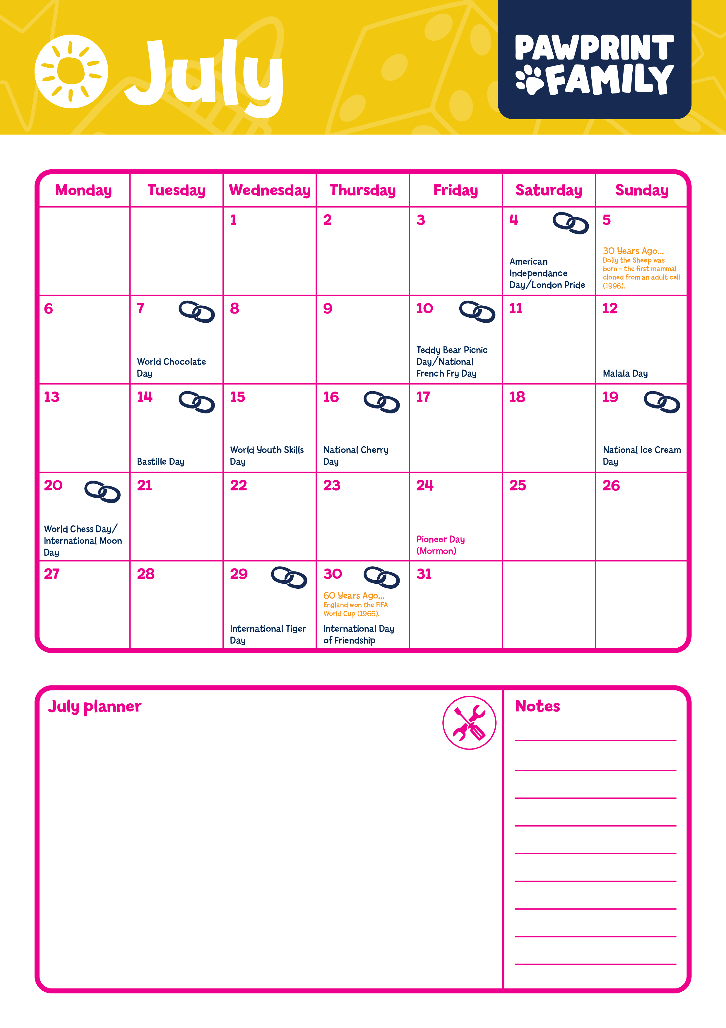 Download, print, and plan! Calendar 2026 - Summer Term is a practical tool from Pawprint Family’s collection – ensuring your summer is well-organized, lively, and full of sunshine-filled adventures.
