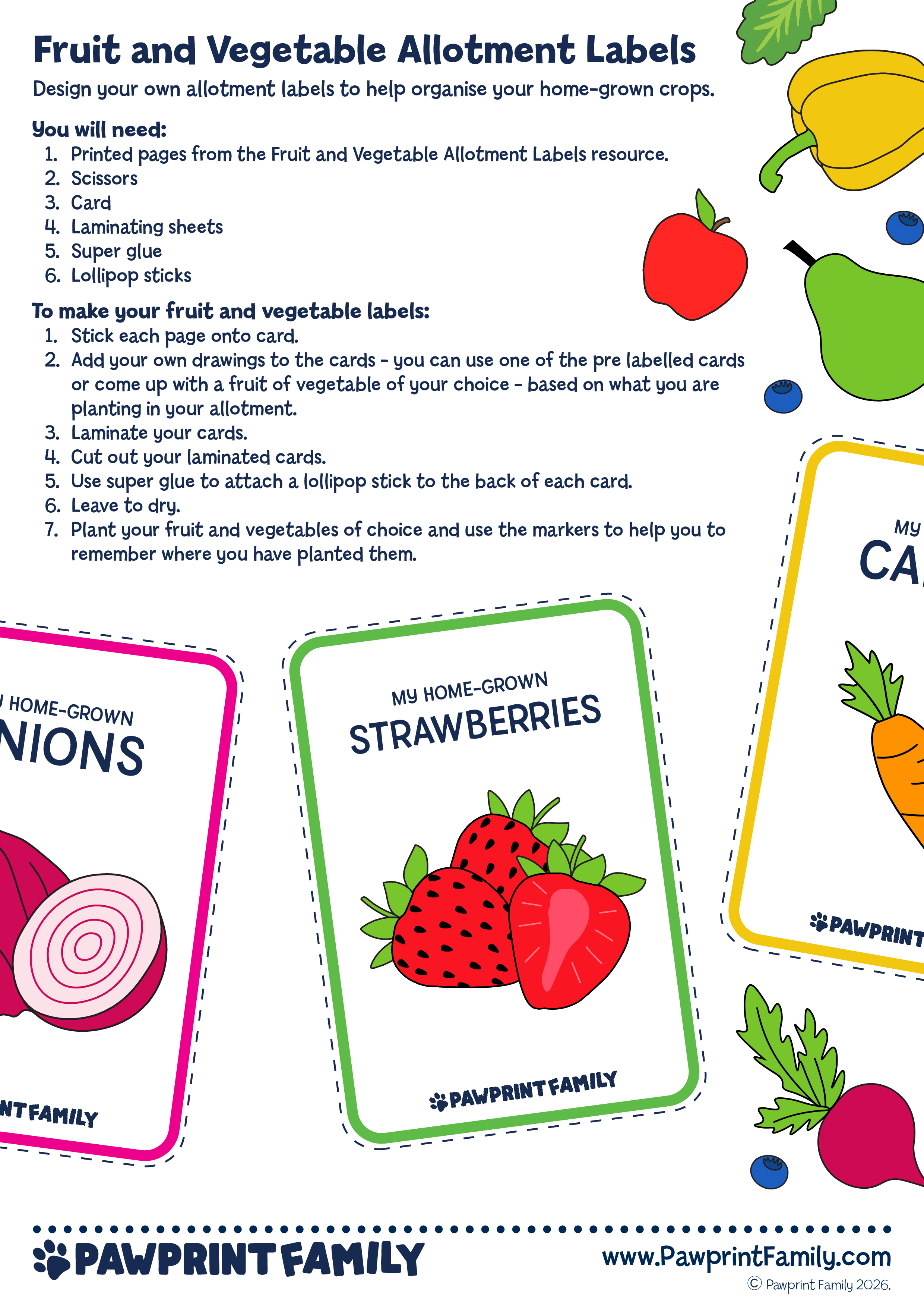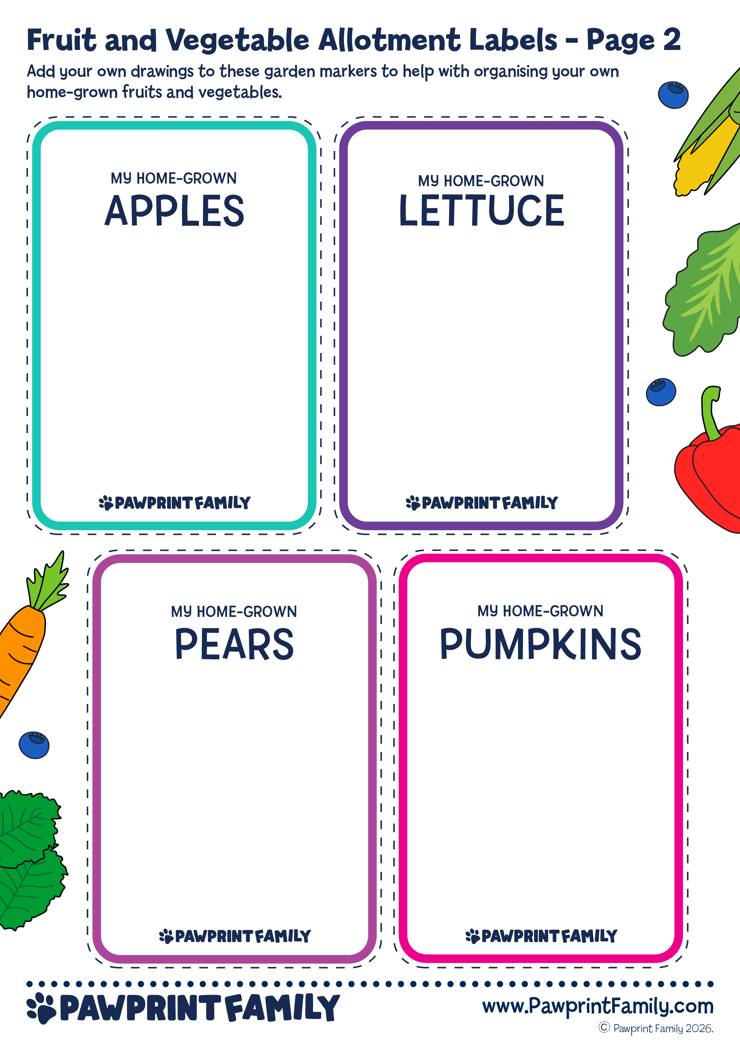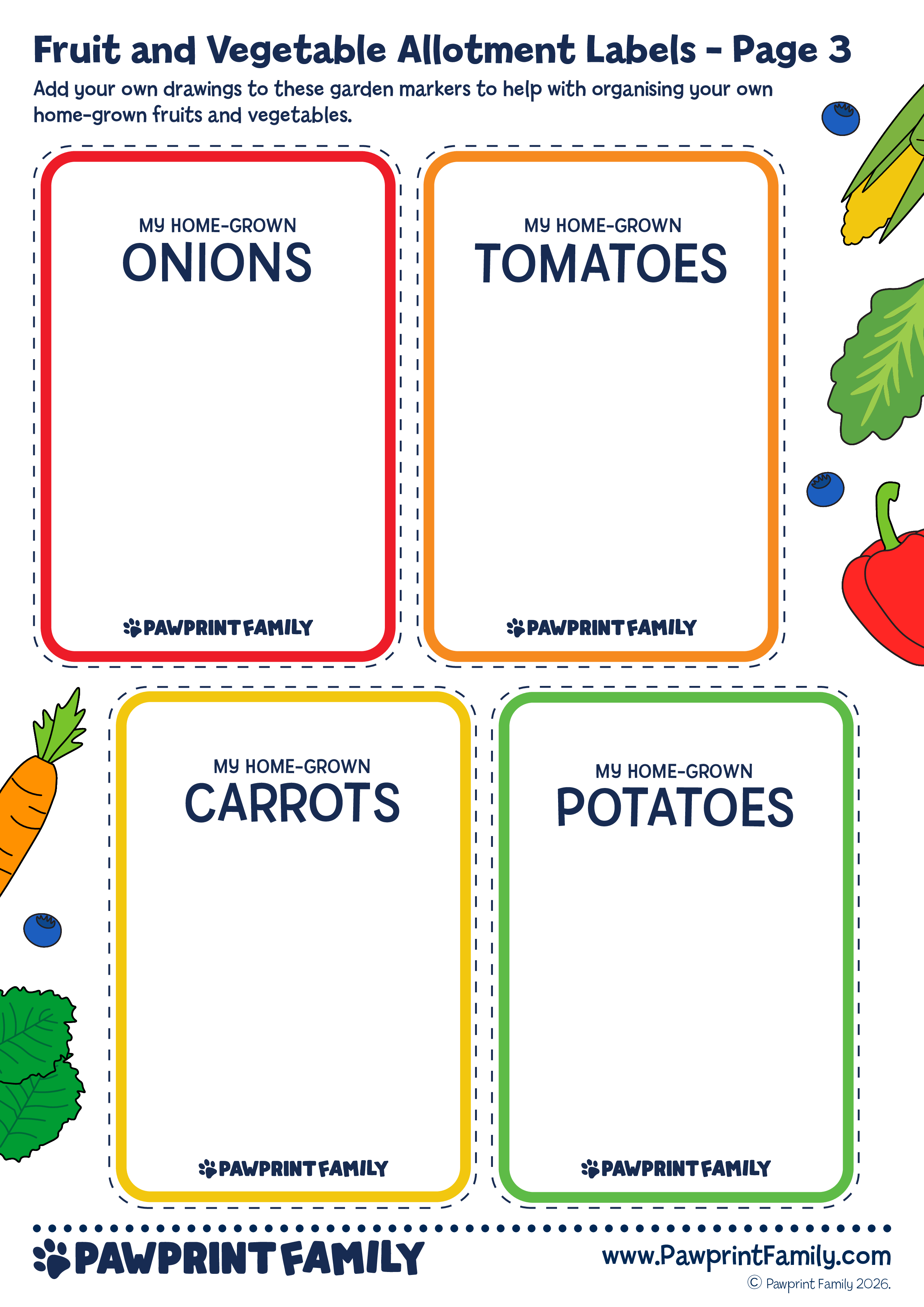 Download, print, and plant with confidence! Fruit and Vegetable Allotment Labels are part of the Pawprint Family’s free resource collection — supporting hands-on learning, real-world skills, and proud “we grew this” moments 🌻🌍