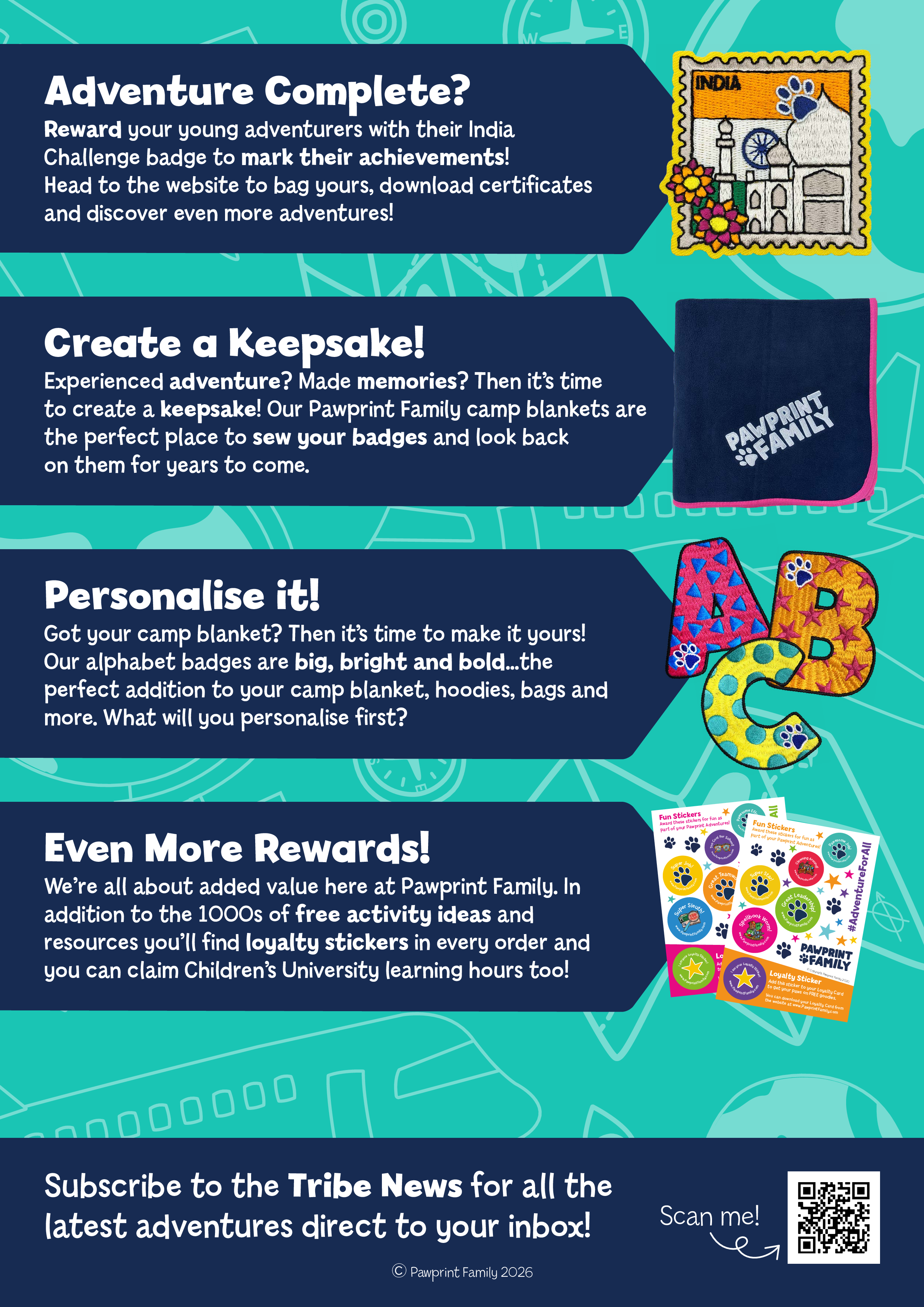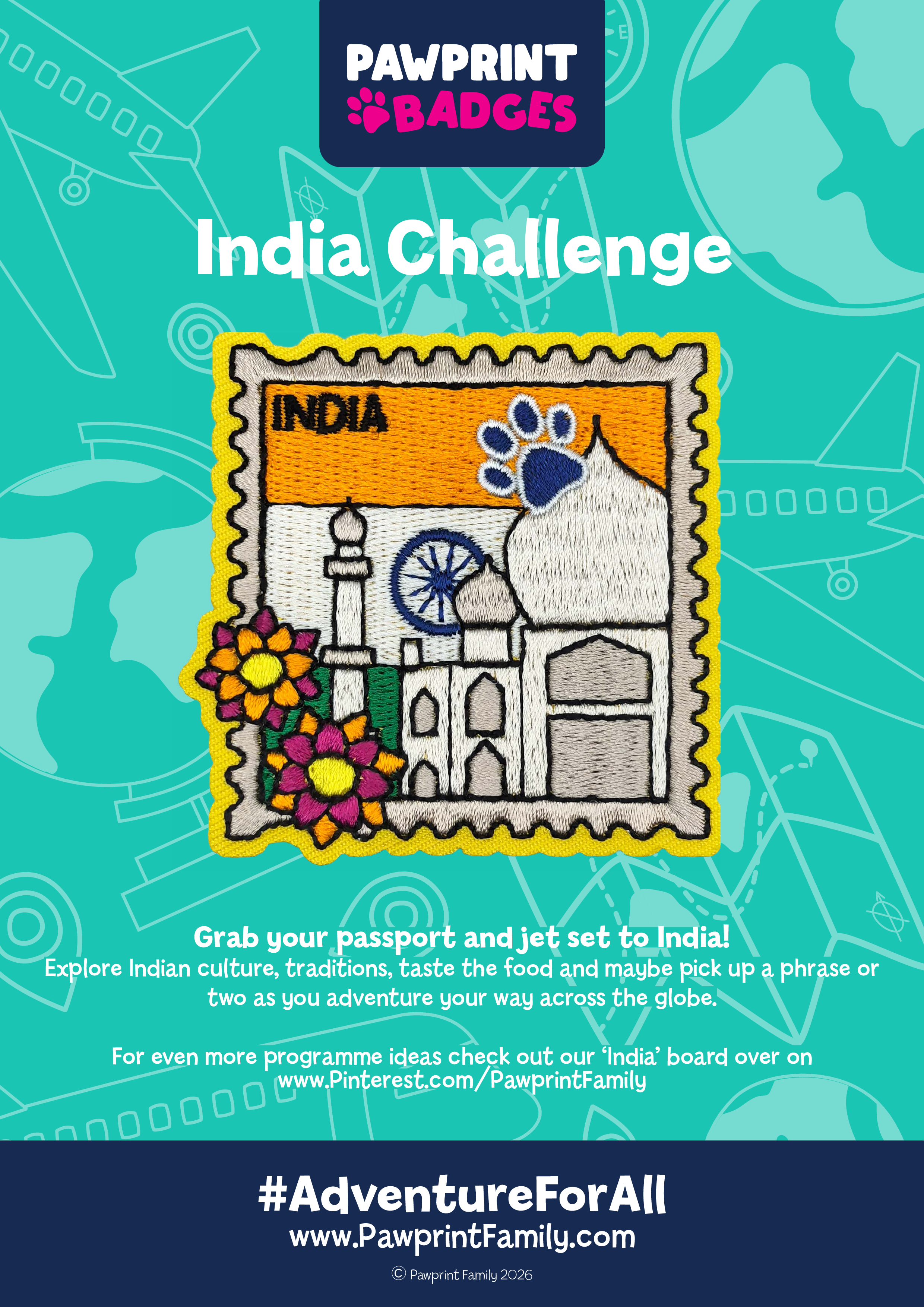 Download, print, and explore! The India Challenge Pack is part of the Pawprint Family’s free resource library – making global learning irresistible through themed adventures that build understanding, respect, and a love of discovering the world.