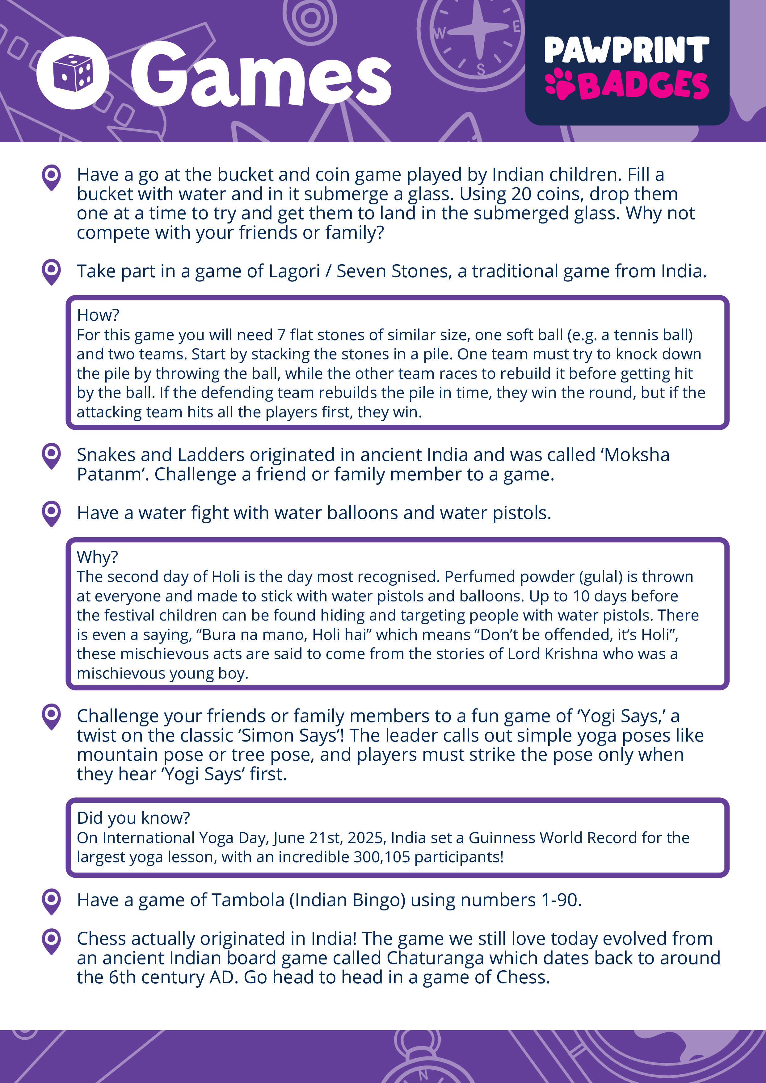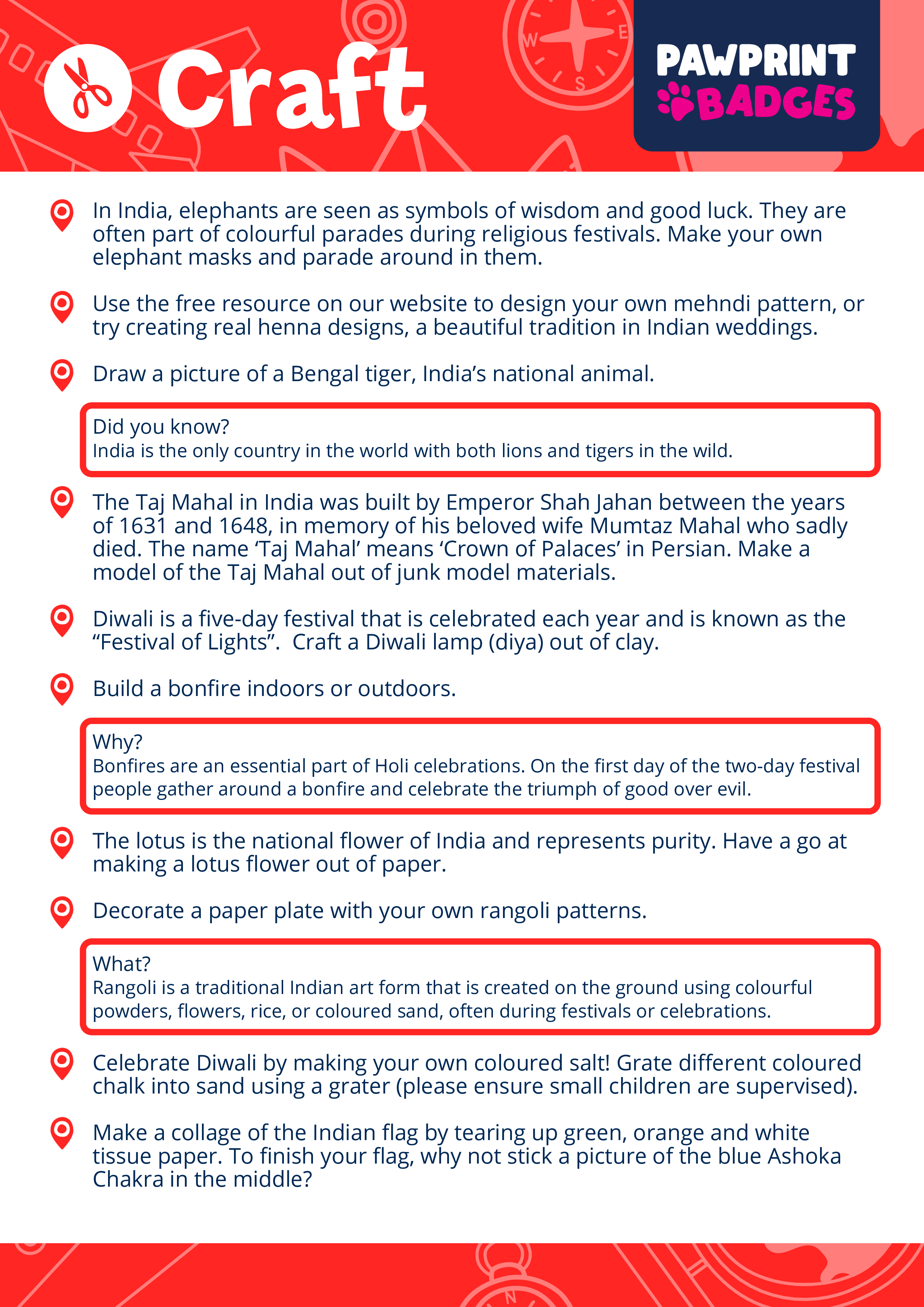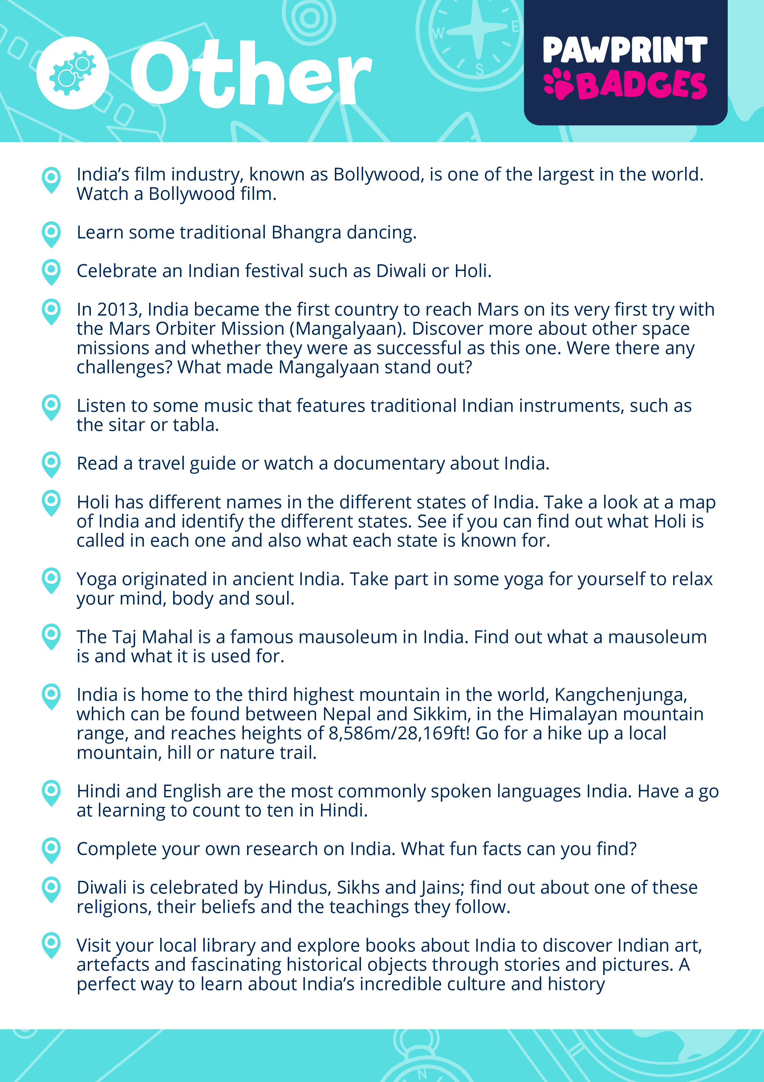 From colourful crafts and flavour-filled food experiences to traditional games, music, and celebrations, this pack invites young adventurers to discover India through creativity, movement, and curiosity. With 40+ activities across Craft, Food, Games, and Other, it offers an immersive and respectful introduction to one of the world’s most diverse and fascinating countries.