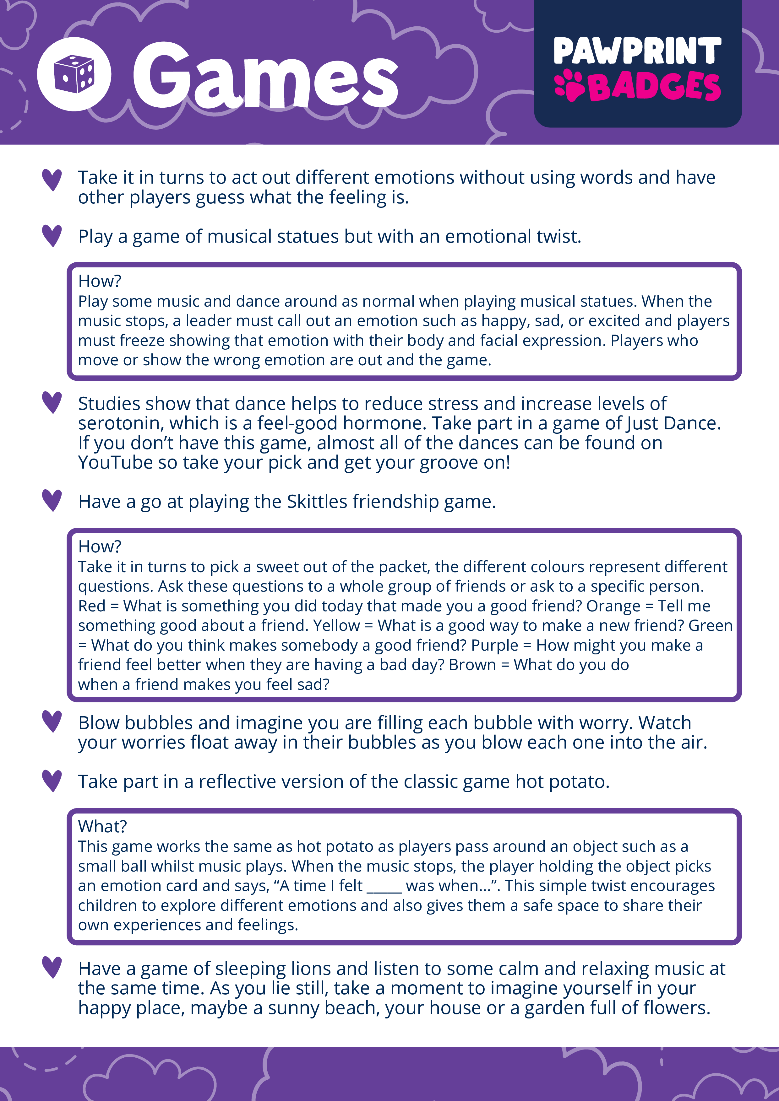 From creative expression and mindfulness to games, reflection, and confidence-building challenges, this pack helps children and young people understand their emotions and recognise that all feelings are valid. With 40+ activities across Craft, Food, Games, and Other, it offers a gentle, flexible approach to emotional learning for groups, classrooms, and home environments.